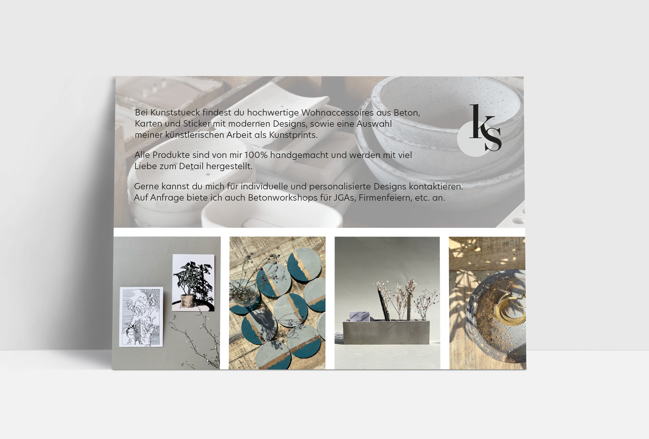 I founded Kunststueck in 2021, a Label for contemporary interior design, selling concrete home accessories, art prints and stationary products. I gained extensive knowledge in online marketing, content creation, brand design, and basic economic skills.